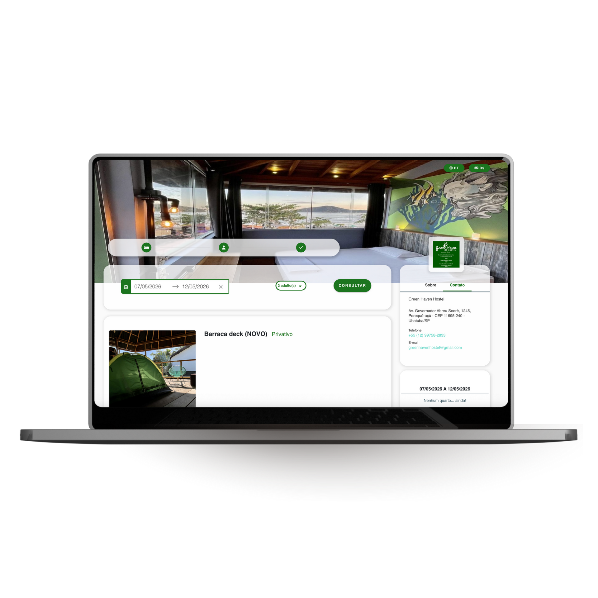 Ele oferece um processo de reserva rápido, transparente e seguro, com confirmação imediata e sem necessidade de troca de mensagens ou formulários manuais.
